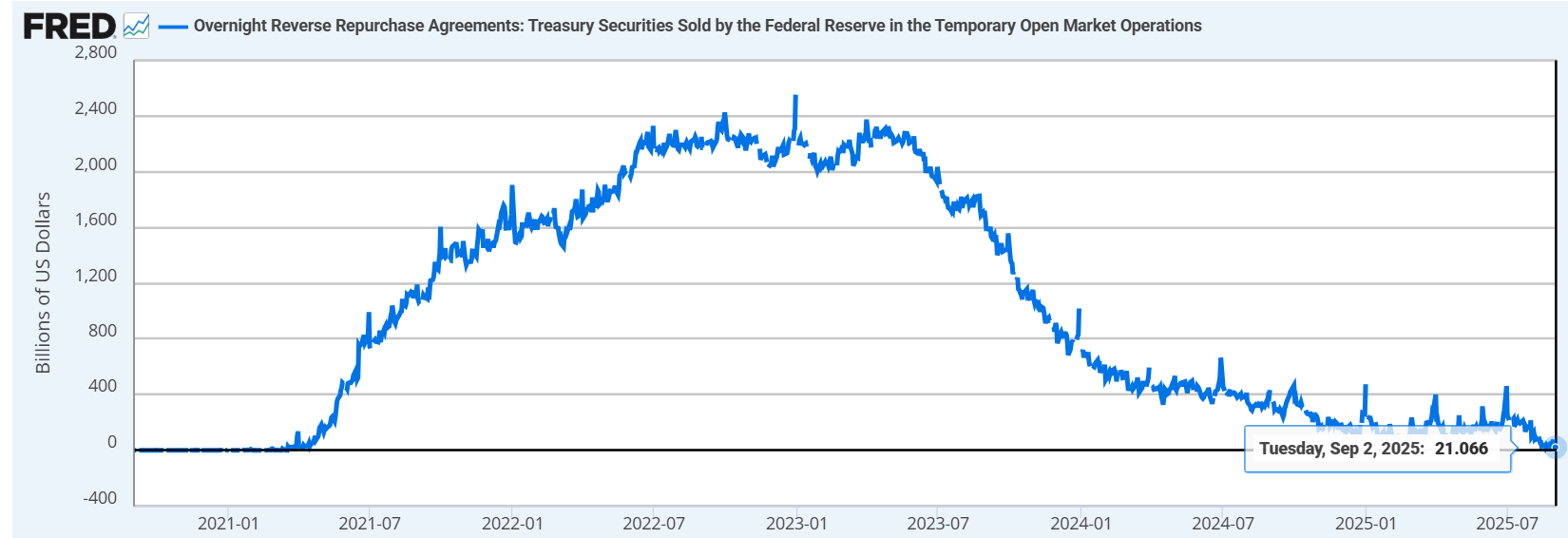 8/29 TGA 잔고를 보니 살짝 감소했었네요. 말일은 은행 재정평가 때문에, 안전자산인 역레포가 충전되는 경향이 있습니다. 거기에다가 8/29에 중장기채가 꽤나 발행되었기 때문에, 시중 유동성 감소로 조정이 좀 오지 않았나 싶어요.