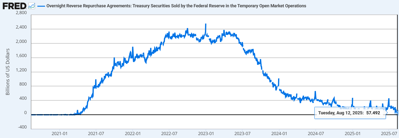 8/11(월) S&P 500 은 0.25% 하락했었는데, TGA 계좌가 살짝 찼었네요. TGA 계좌가 하루 후에 나오다 보니 실시간 증시와는 괴리감이 있어 약간 불편은 하네요. TGA 계좌 충전된 만큼 살짝 하락했었던 것 같습니다. 8/12(화)에는 나스닥이 신고가를 찍었는데, TGA는 내일 확인하겠지만 RRP를 보니 300억달러나 줄었습니다. RRP 에서 돈이 풀려 나스닥이 오른것 같습니다. 300억달러면 진짜 꽤 많이 풀렸네요. 이렇게 시중에 돈이 풀린걸 보니 아마 내일 발표될 8/12 TGA 계좌는 충전이 많이 안됐을 것 같습니다. 그냥 이 돈이 거의 시중으로 갔다고 봐야할 것 같습니다.