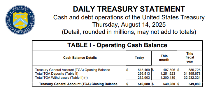 8/14(금) 미국 증시는 소폭 하락했습니다. TGA 계좌도 좀 찼고, RRP도 거의 바닥 수준으로 떨어지고 있네요. 그래도 아직 3500억 달러정도 남았습니다. 8월 국채발행 계획을 보니, 8/18, 8/19 에 걸쳐서 단기채만 무려 2400억달러 발행되네요. 이거 결제일이 8/21이라, 잭슨홀 미팅 전후로 해서 꽤 큰 조정이 올 것 같습니다. 단기채 2400억달러여도, RRP 잔고로 커버 불가능하고 결국 지준금에서 깎일 수 밖에 없는 구조라 이번주가 조정시기가 될 것 같습니다. 그리고 다음주도 국채발행 계획이 꽤 많네요. (아직 구체적인 금액까지는 안나옵니다.) 이번주를 기점으로해서 조정 시기가 올 것 같습니다.