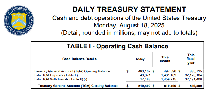 8/18(월) 미국 증시는 보합이었네요. TGA 계좌도 200억 달러 정도 찼는데, 전체적으로 큰 변화는 없었습니다. 8/19(화) 증시가 좀 빠졌었는데, 국채발행계획을 보니 8/19(화) 에 국채 결제량이 꽤 많았네요. 어림잡아 1000억달러는 넘었던 것 같습니다. 내일 TGA 잔고 확인해봐야겠지만, 1000억달러가 넘게 국채발행 되었으면 TGA 잔고도 대충 6000억달러 언저리는 되어서요. 그리고 8/21(목)에 결제되는 금액은 2000억달러정도거든요. 그럼 벌써 이번주에 TGA 잔고가 8000억달러정도 되는거네요. TGA 잔고가 차고 나서 어떻게 해야할지 고민이네요. TGA 잔고 8500억달러 정도 채운 후에는 아마 재무부에서도 적극적으로 돈을 풀 것 같아서 증시가 다시 부양될 것 같은데, 그래도 결국 9월까지 국채발행하면 지준금은 깎이는 모양새라서... SOXS 언제 빼야할지 고민입니다.. 일단 TGA 잔고 8500억달러 달성하면 1차적으로 분할매도 하고, 그 이후에는 추이를 좀 봐야겠습니다.